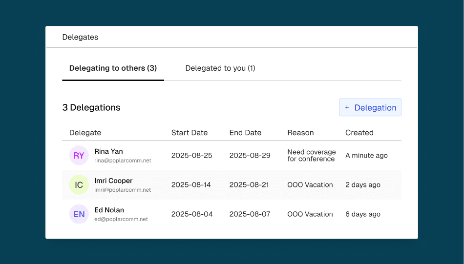 We’ve also added Delegating Reviewers. When managers are out of office or executives are overloaded, they can delegate their approval responsibilities to someone else – keeping requests moving without bottlenecks.