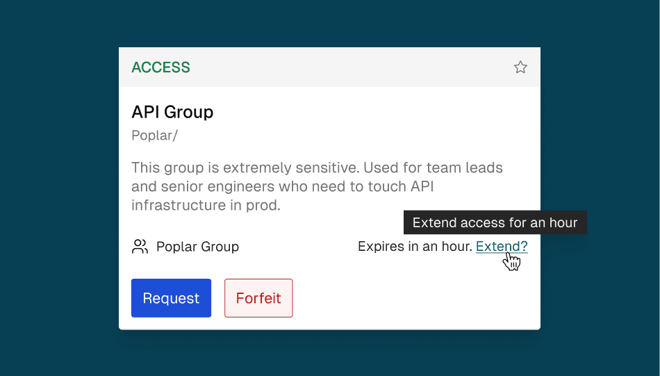 With Request Extensions, Opal admins can allow users to extend access to resources without repeating the approval cycle. Users can also re-request access in Slack using the “Quick Request” button, which is included on notifications for expired access.